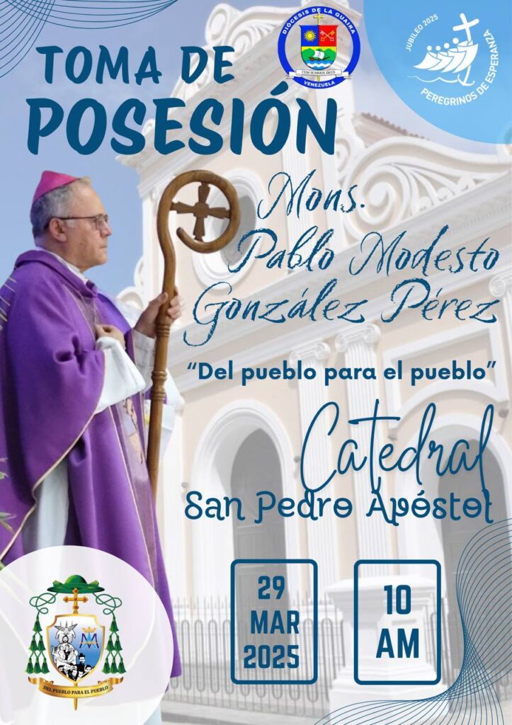 «Con inmensa alegría, les extendemos una cordial invitación a la toma de posesión episcopal de Monseñor Pablo Modesto González Pérez,quien será nuestro nuevo pastor»